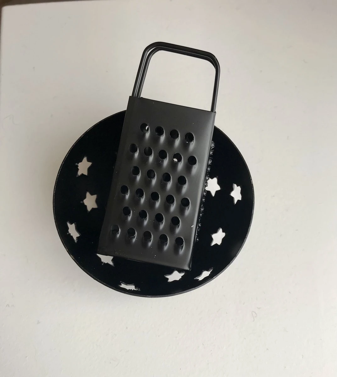 gouden mini raspje voor geurblokjes. Geurt jouw amberblokje minder als je zou willen? Haal het geurblokje een aantal keer (naar smaak) over het zwarte mini raspje en voilà .. Je kunt weer daaaagen genieten 🙂
