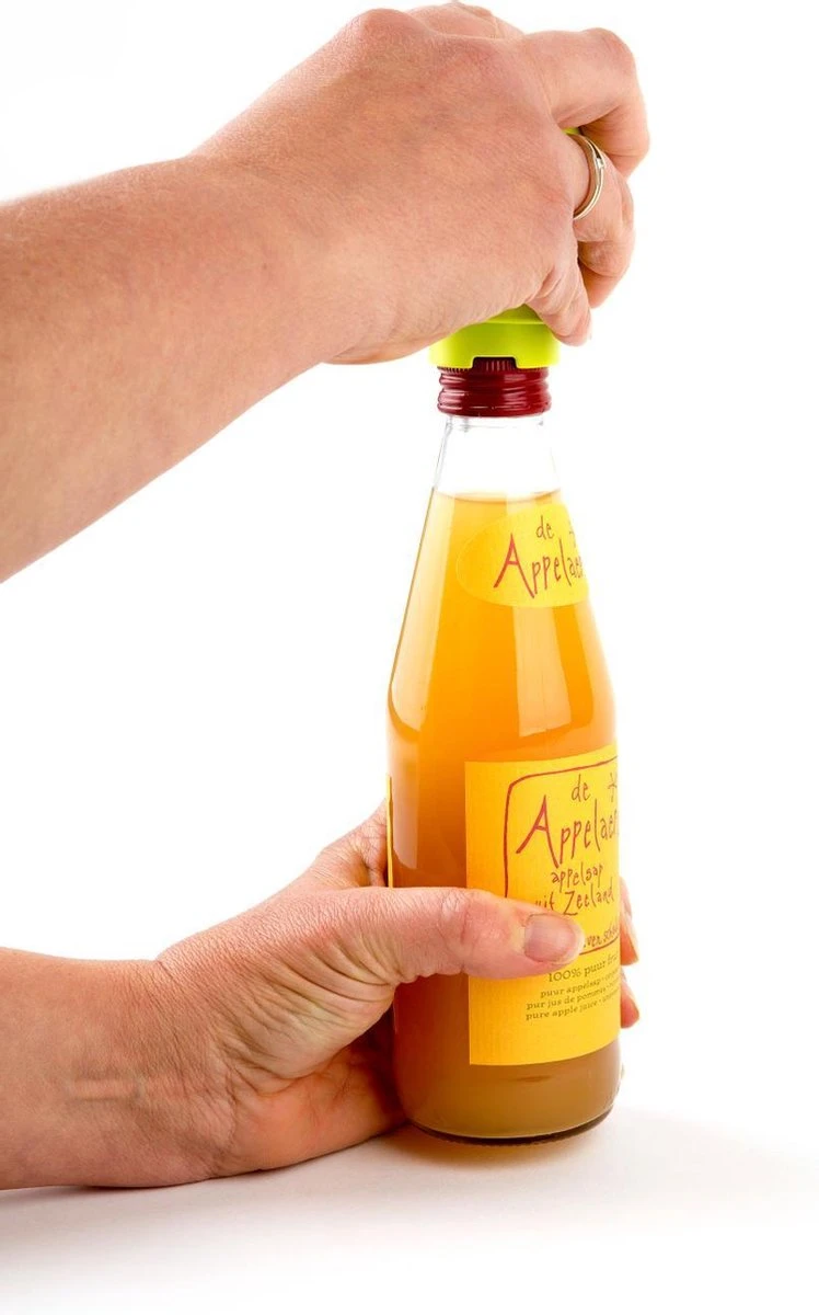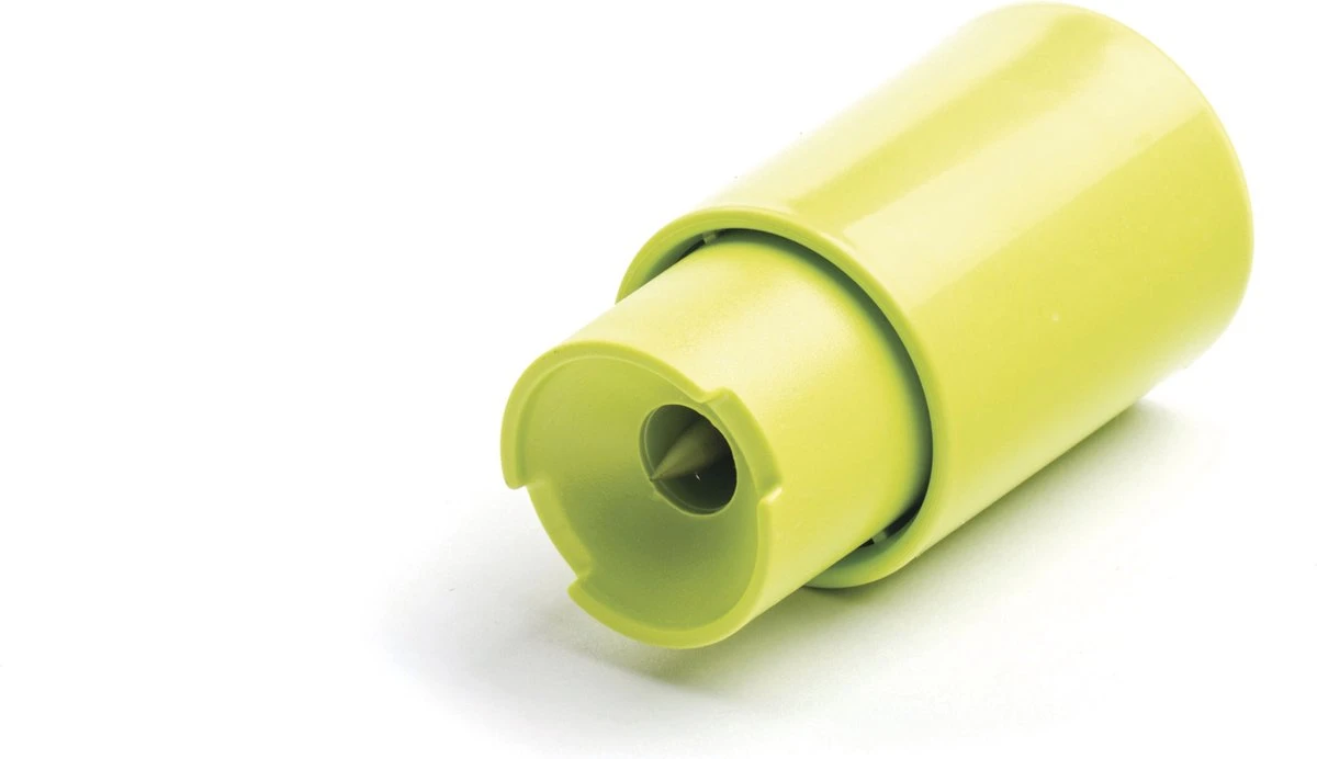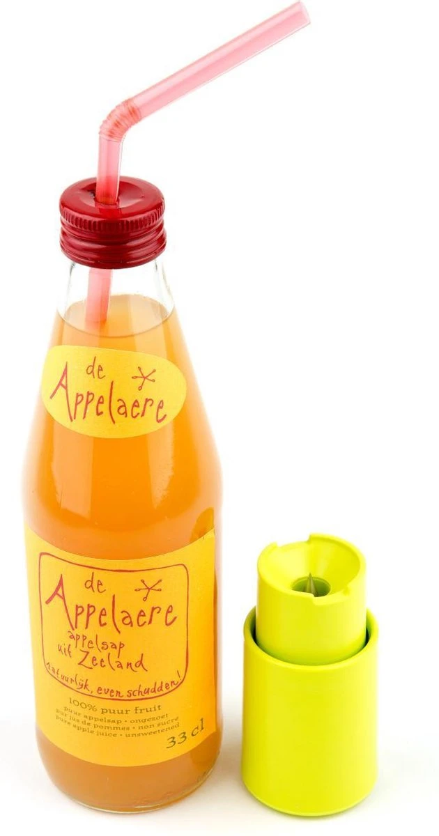 “Prikit”. Perforeert eenvoudig kroonkurken en blikjes met een ø6,5 mm gat. Een rietje door het gat steken houdt insecten uit de drank. Vermindert morsen als een drankje omvalt. Geschikt voor 6 mm biologisch afbreekbare rietjes.
