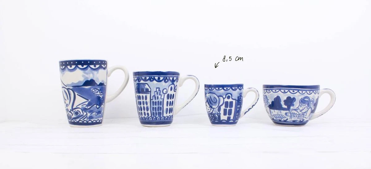 Deze mini-mok is gemaakt met een knipoog naar het oud-hollandse Delftsblauw servies. Dit vrolijke servies is gemaakt door de twee vriendinnen van het inmiddels bekende Blond Amsterdam. A bit of Blond every day!