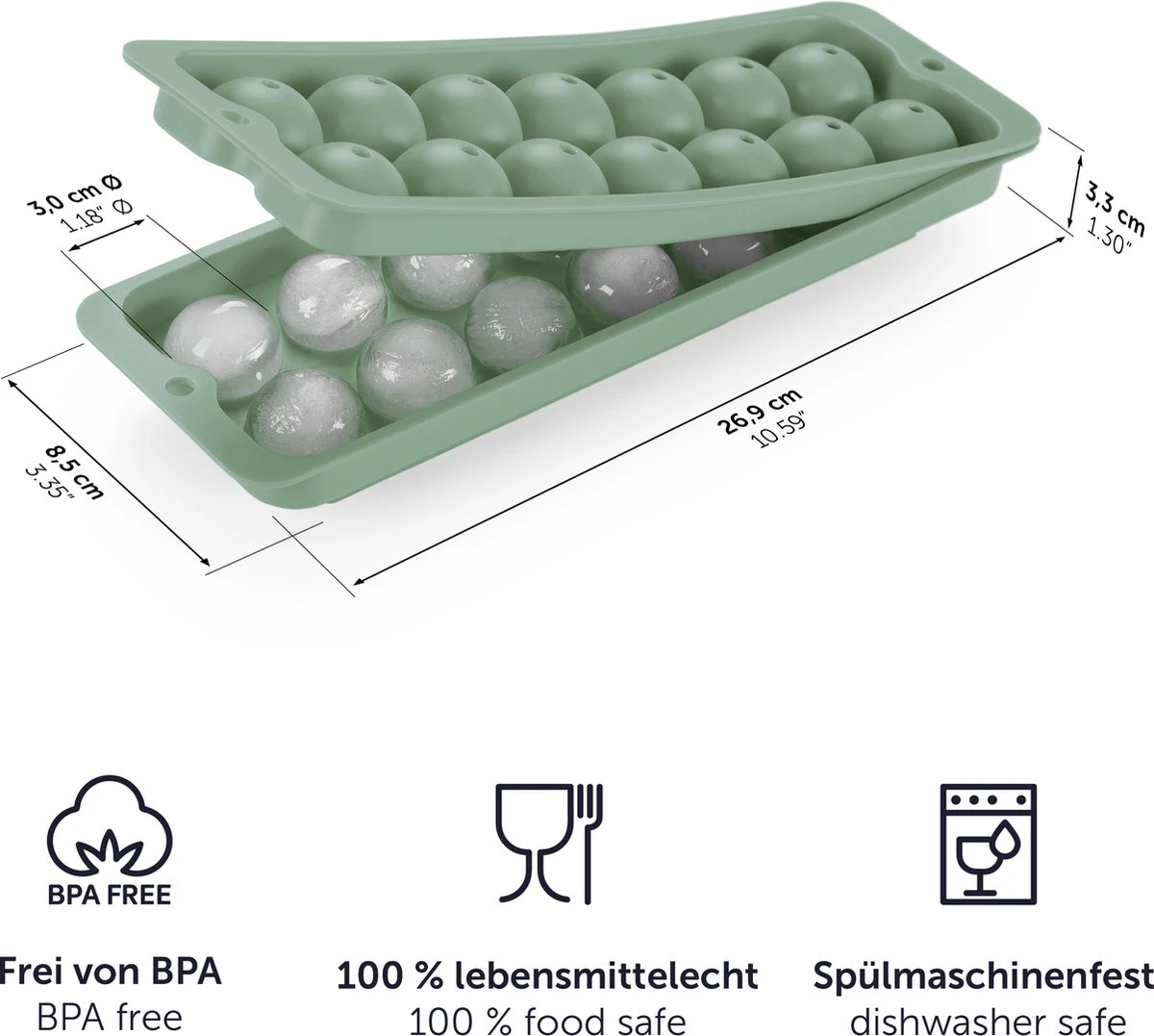 - 2 ijsblokjesvormen, 14 ijsballen van 3 x 3 cm