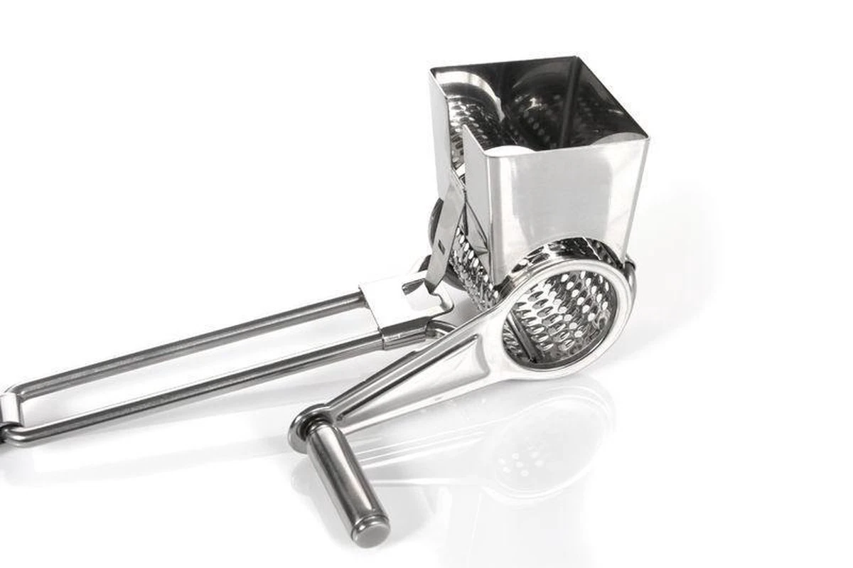 Dankzij zijn slanke vorm en handige draaimechanisme heeft deze rasp een uniek design. Plaats een stuk kaas in de houder van de rasp en knijp de handrasp stevig dicht. Gebruik je andere hand om te draaien. Ben je link- of rechtshandig? Dat maakt niet uit! Deze handrasp is op beide manieren te gebruiken.