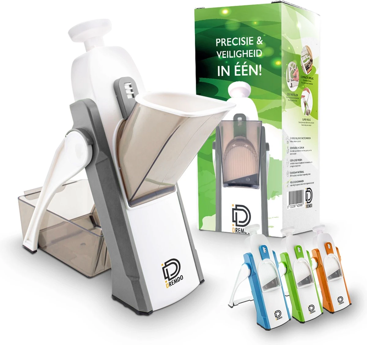De mandoline is zeer eenvoudig in gebruik en werkt met veel verschillende soorten groenten. Deze wordt geleverd met een bakje, waar de gesneden groenten in worden opgevangen. De mandoline is zeer veilig, je handen komen niet in de buurt van het mes. De groentesnijder is ook zeer eenvoudig en veilig af te wassen en neemt weinig plek in jouw keukenkastje in.