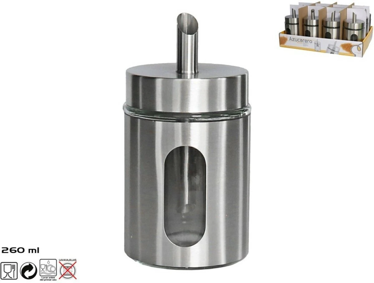 Suikerpot/suikerstrooier RVS zilver metaal met strooi tuit 260 ml.