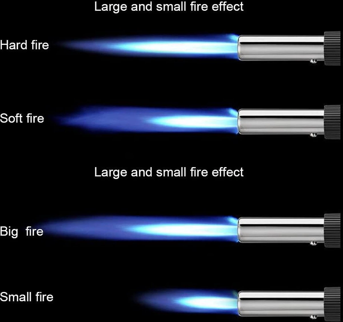 - De temperatuur kan 1300 graden Celsius bereiken om aan verschillende behoeften te voldoen, je kunt verschillende vlammen kiezen volgens je wensen