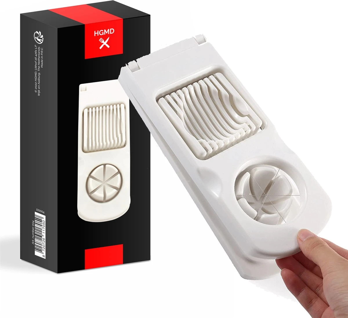 Heb je altijd al moeite gehad met het in stukjes snijden van eieren of champignons? Dan is dit de juiste oplossing voor jou! HGMD® bied deze super sterke en vaatwasserbestendige eiersnijder aan. Geschikt voor stukjes en partjes, inclusief luxe verpakking.