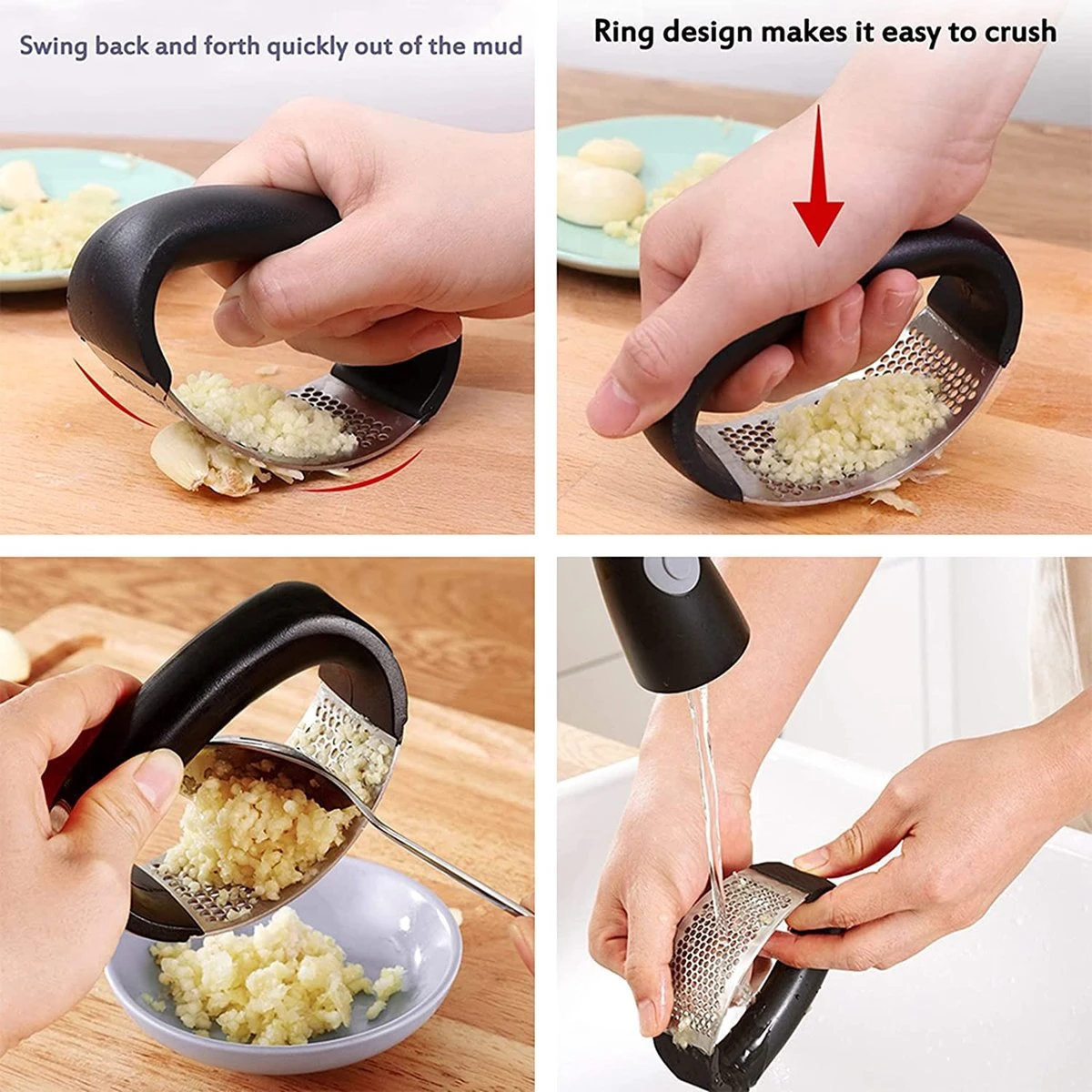 De knoflookpers is uitgerust met een antislip, gebogen ergonomische handgreep, eenvoudig te bedienen en comfortabel te houden. Zelfs voor mensen met een zwakke of onaangename polsgreep kunnen ze comfortabeler zijn en knoflook of gember sneller persen.
