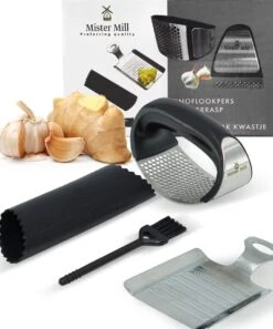 Merkloos Knoflookpers/Gemberpers – Vaatwasser Bestendig – Met Gratis Borstel & Siliconen Peller