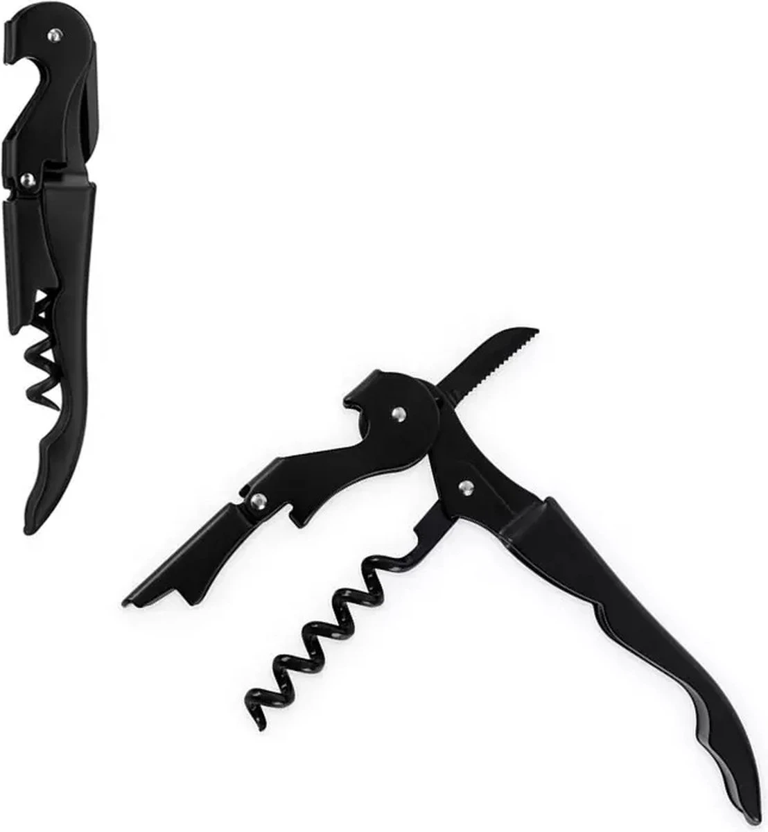 Kurkentrekker, Bieropener, Wijnopener, Flesopener, Kelnersmes, Mat Zwart, Multifunctioneel, RVS, Roestvrij Staal, Zakmes, Mesje, Kurken Trekker, Bier Opener, Wijn Opener, Edelstaal, Duurzaam, Gereedschap, Gadget, Keukengerei, Veelzijdig.