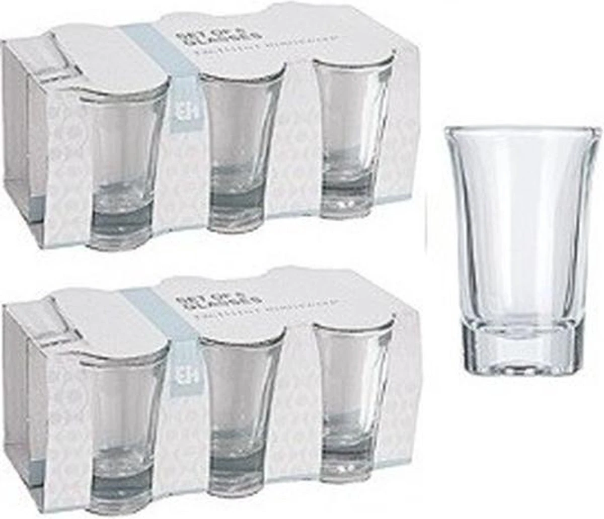12x shotglazen / borrelglaasjes, 40 ml. Transparant shotglas, gemaakt van glas. Inhoud: Ongeveer 4,0 cl. Inhoud set: 2x 6 shotglaasjes.
