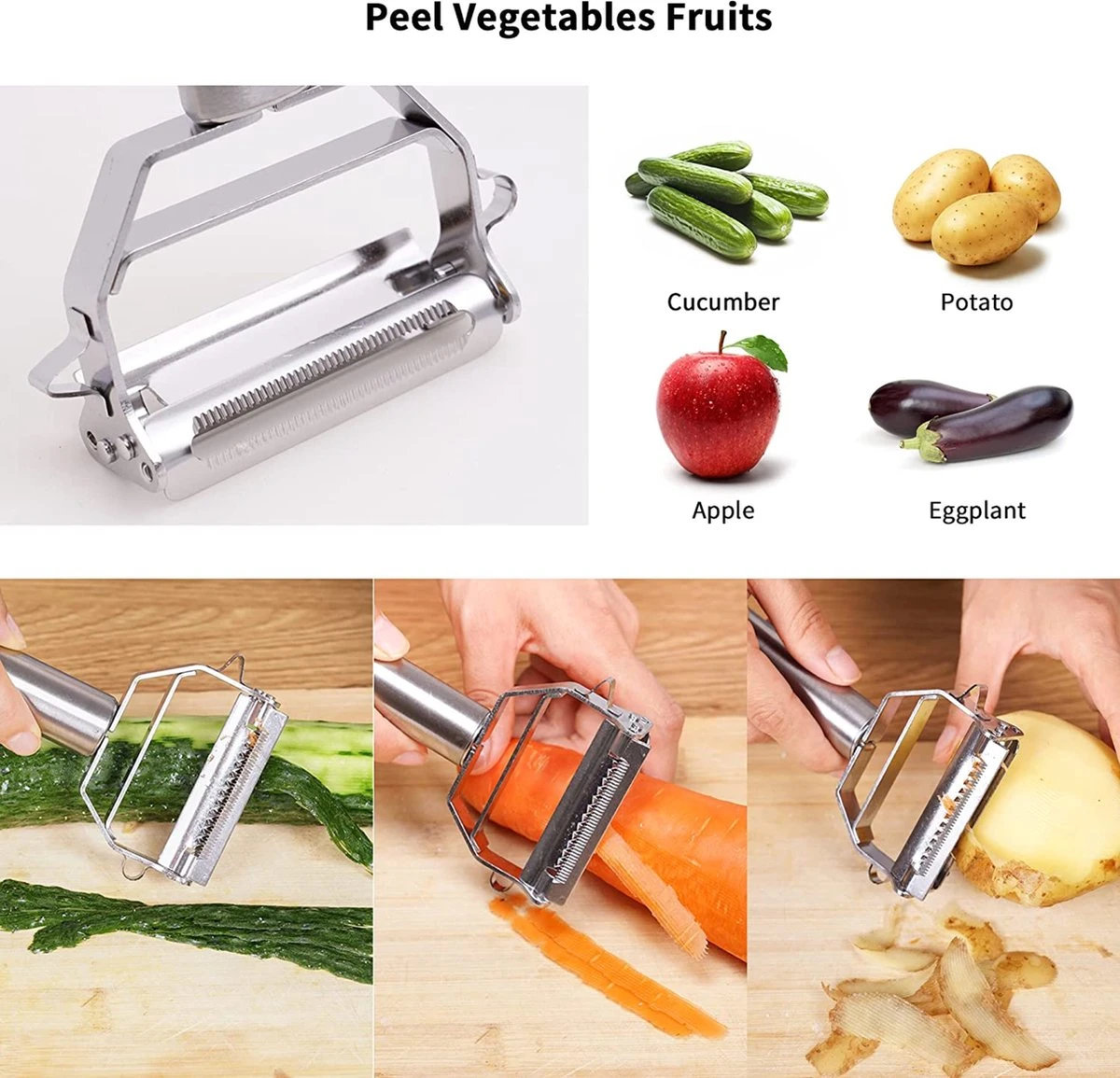 【Handige keukenhulp】 Deze ultrascherpe dunschiller met twee messen kan worden gebruikt voor het schillen en julienen van alles, van appels en peren tot wortelen, komkommers, aardappelen, pompoen en courgette, gemakkelijker en efficiënter. Je maakt in korte tijd prachtige maaltijden en daarmee kun je meedoen aan de revolutionaire rage van afvallen.