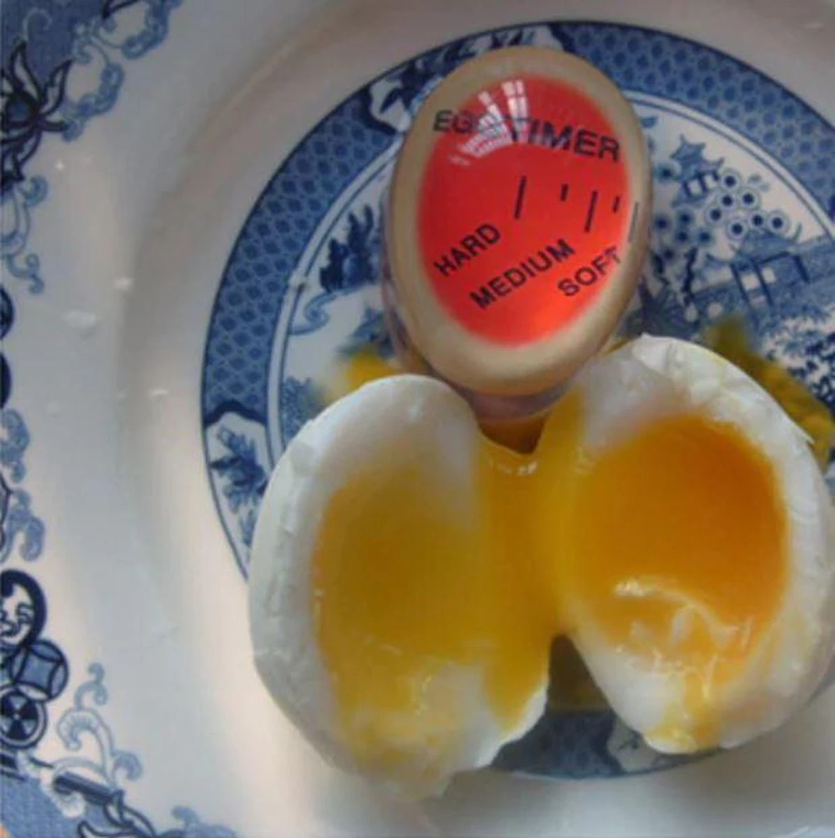 Dit ei wekker verandert van kleur zodat je precies weet of je een hard of zacht ei hebt. Is het ei bijna helemaal rood dan is het een zacht gekookt ei.