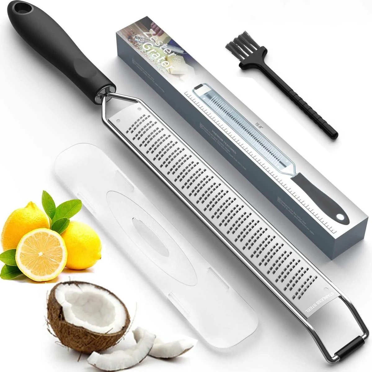 Deze ergonomische, hoogwaardige zesteur / keukenrasp is gemaakt van hoogwaardig materiaal om uw voedselbereiding gemakkelijk en veilig te maken. De premium rasp wordt geleverd met een kunststof beschermhoes. Deze beschermkap zorgt voor een blijvend scherp blad. Na het gebruik van de rasp, kun je deze eenvoudig reinigen in de vaatwasser. Is je rasp weer schoon? Hang hem eenvoudig op aan het oog in het handvat, dit voorkomt beschadigingen.