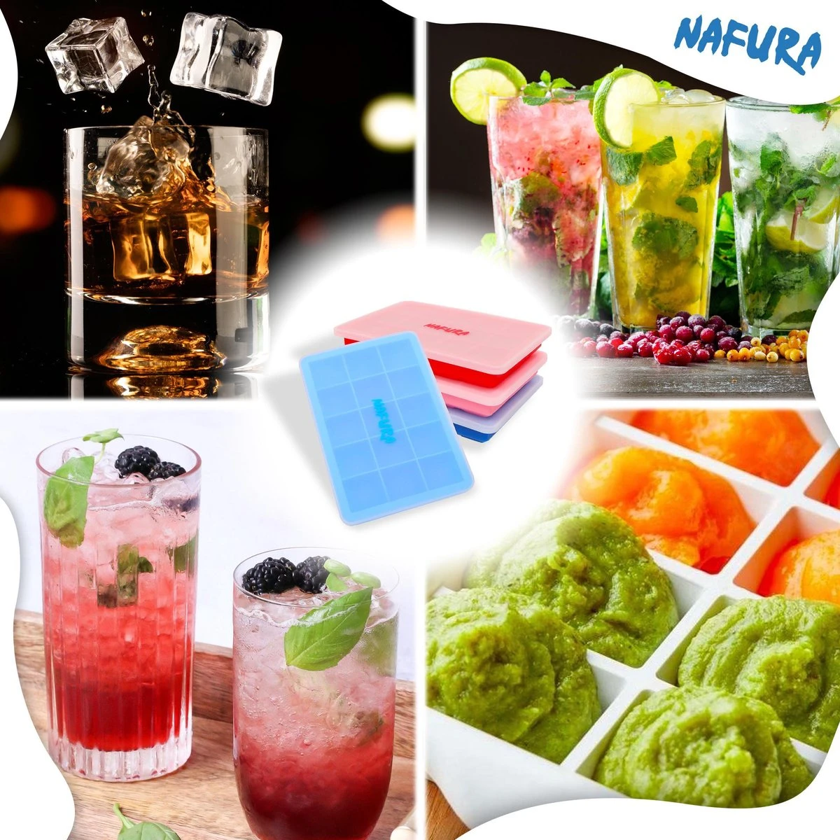 Maak ook jouw zomer onvergetelijk met de ijsblokjesvormen van Nafura. Gemak, gebruiksvriendelijk en veilig voor het hele gezin. Maak van elke gelegenheid een feestje met Nafura.