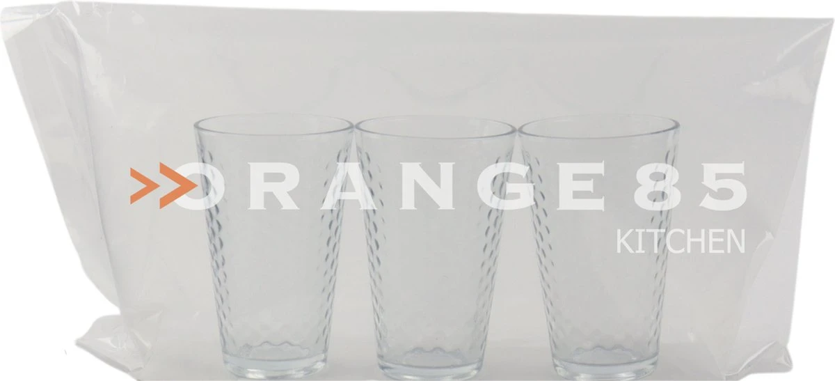 Deze drinkglazen set van Orange85 is lichtgrijs transparant van kleur. De set bestaat uit 3 glazen. Het glas is gemaakt van glas met een geribbeld patroon. Elk glas heeft een inhoud van 300 ml. De glazen hebben een inhoud van 300 ml. De glazen zijn geschikt voor in de vaatwasser.