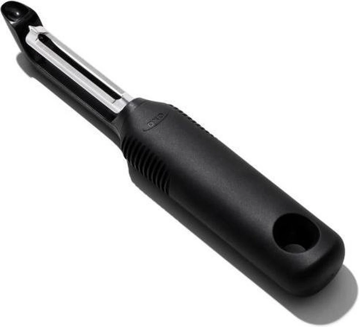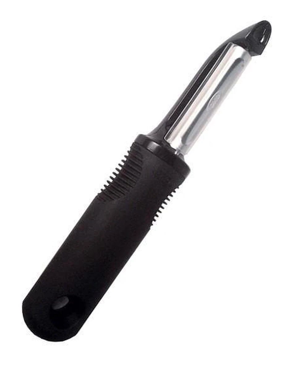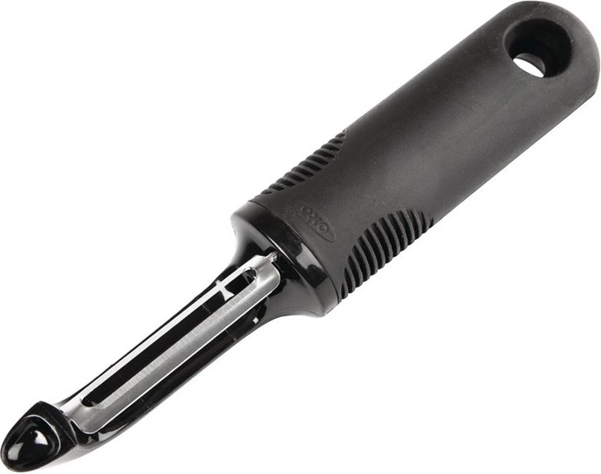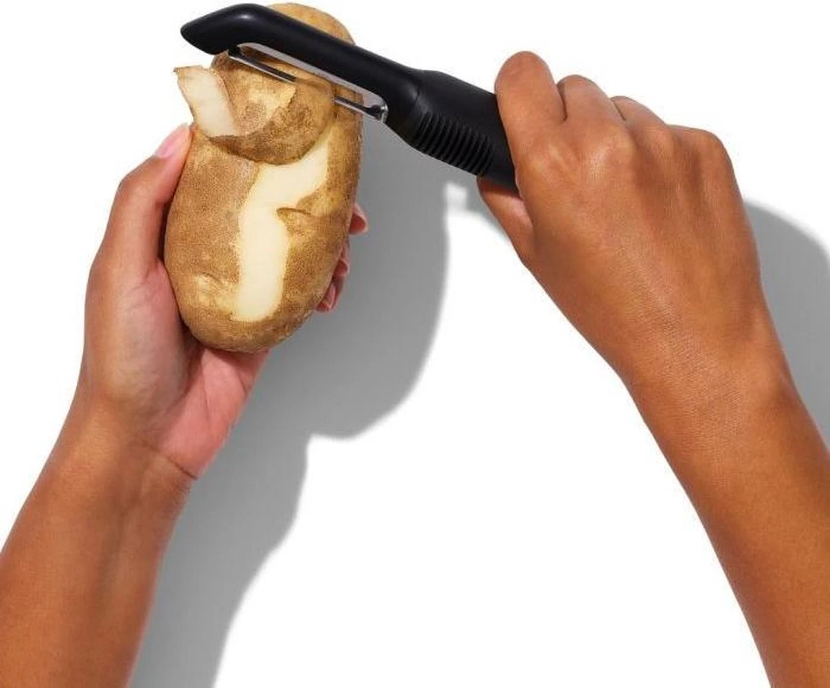 Deze dunschiller van OXO Good Grips is eenvoudig de beste dunschiller die je ooit hebt geprobeerd! Het scherpe, roestvrijstalen blad schilt zelfs de hardste fruit en groenten met gemak. De zachte, comfortabele greep steunt je hand tijdens het schillen en is anti-slip, zelfs wanneer je handen nat zijn. De dunschiller is ook te gebruiken als je linkshandig bent en is voorzien van een handige aardappeloog verwijderaar!