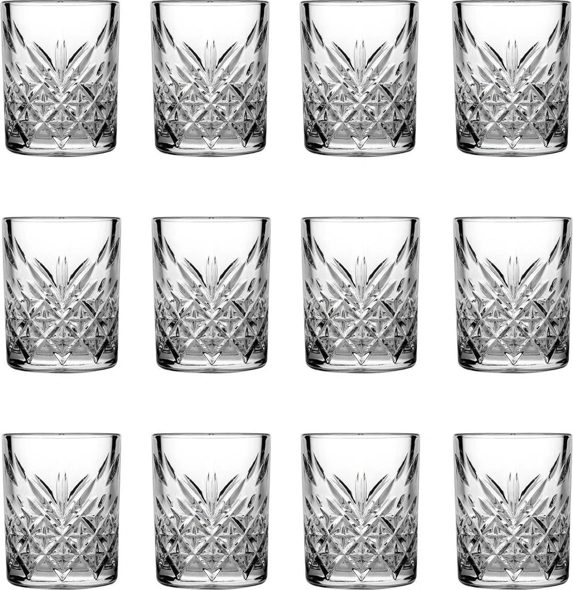 Deze opvallende borrelglazen uit de serie Timeless hebben een prachtig rechte vorm, waardoor ze fijn in de hand liggen. Met hun bijzondere hoekige glasbewerking maken zij iedere likeur tot een ware traktatie. De borrelglazen hebben een dikke bodem, wat ze een robuust en stoer karakter geeft. Daarnaast zijn deze glazen gemaakt van extreem sterk glas en kunnen na gebruik perfect gereinigd worden in de vaatwasmachine. Met deze glazen heb je voor ieder feestelijke gelegenheid de juiste glazen in huis. Deze set bestaat uit 12 borrelglazen met een inhoudsmaat van 6 cl.