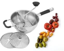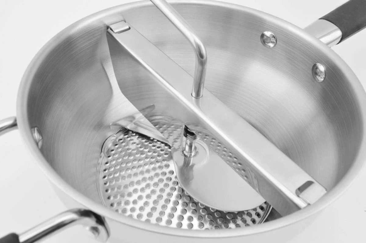 Deze luxe passeerzeef kan worden gebruikt voor het maken van verse appelmoes, aardappelpurees, soepen, jams en bijvoorbeeld babyvoeding. De passeerzeef beschikt over drie verwisselbare inzet schijven, (fijn, medium en grof) hiermee kan de diameter worden gekozen voor de bereiding.