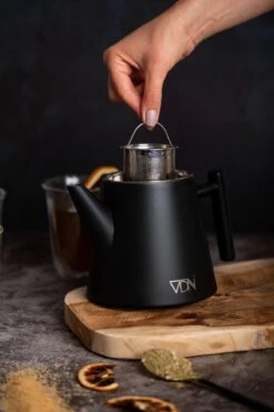 Vatten® – Premium RVS Theepot – Incl. RVS Theefilter – 1L – Zwart – Dubbelwandig