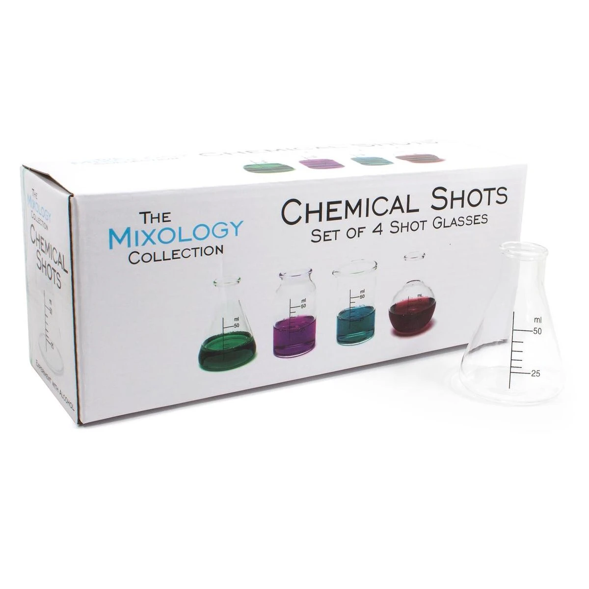 Met de Chemical Shot Glasses heb jij de perfecte manier om jouw favoriete alcoholische brouwsels te nuttigen. Deze chemische shot glazen bestaan uit een set van 4 verschillende scheikunde glazen met meetlijnen tot 50 ml. Zo kun je precies de juiste hoeveelheid “chemicaliën” inschenken. Creëer je eigen scheikundige alcoholische drankjes met deze mini laboratorium glaasjes. Mix je eigen chemische shots en zie wat voor een reactie je krijgt.