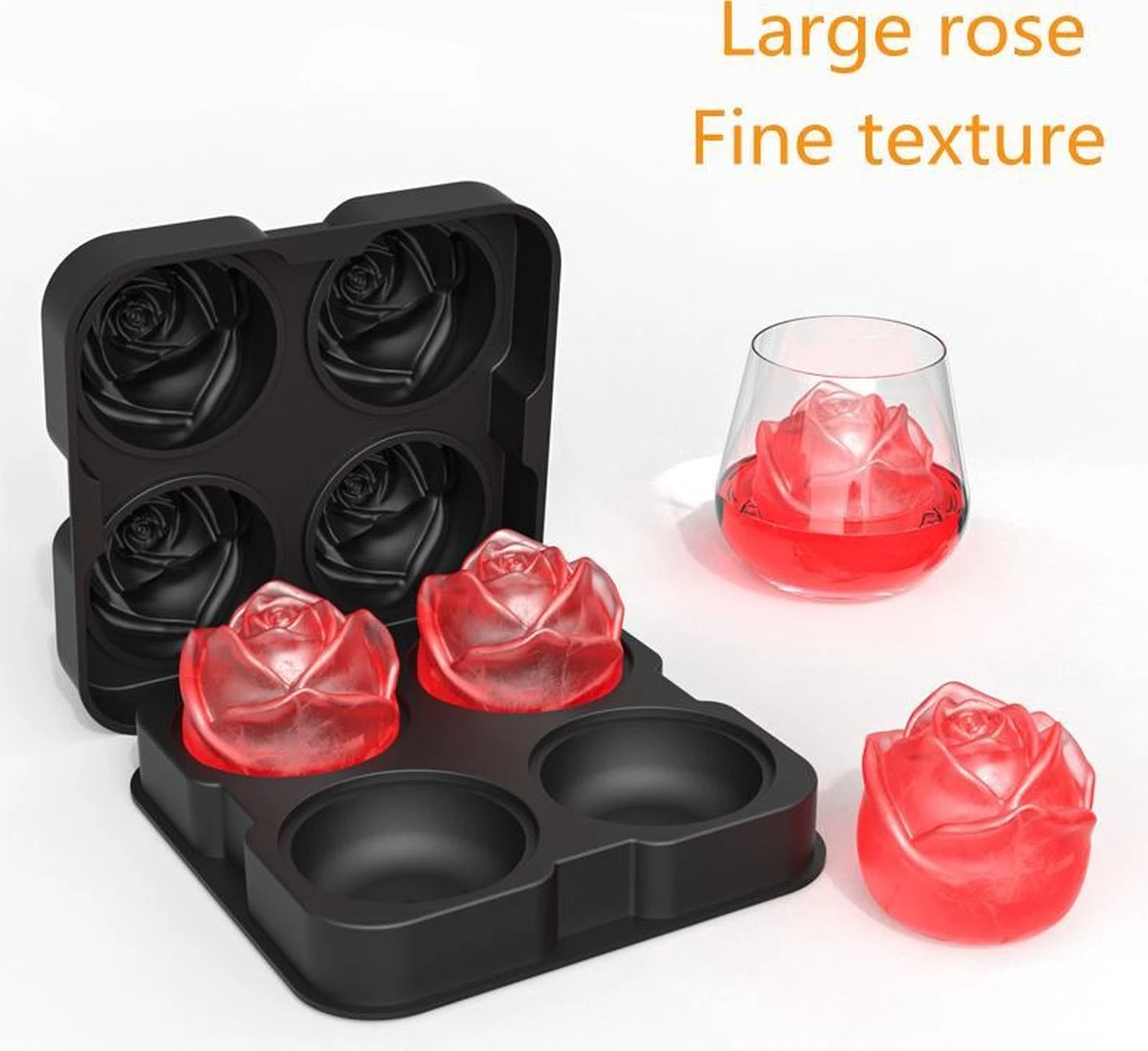 | Verpakkingsinhoud | 1x TDR – Siliconen ijsblokjesvorm – ijsbal Maker Met Deksel – ijsklontjes maken – 4 vormen – Thema: roos |