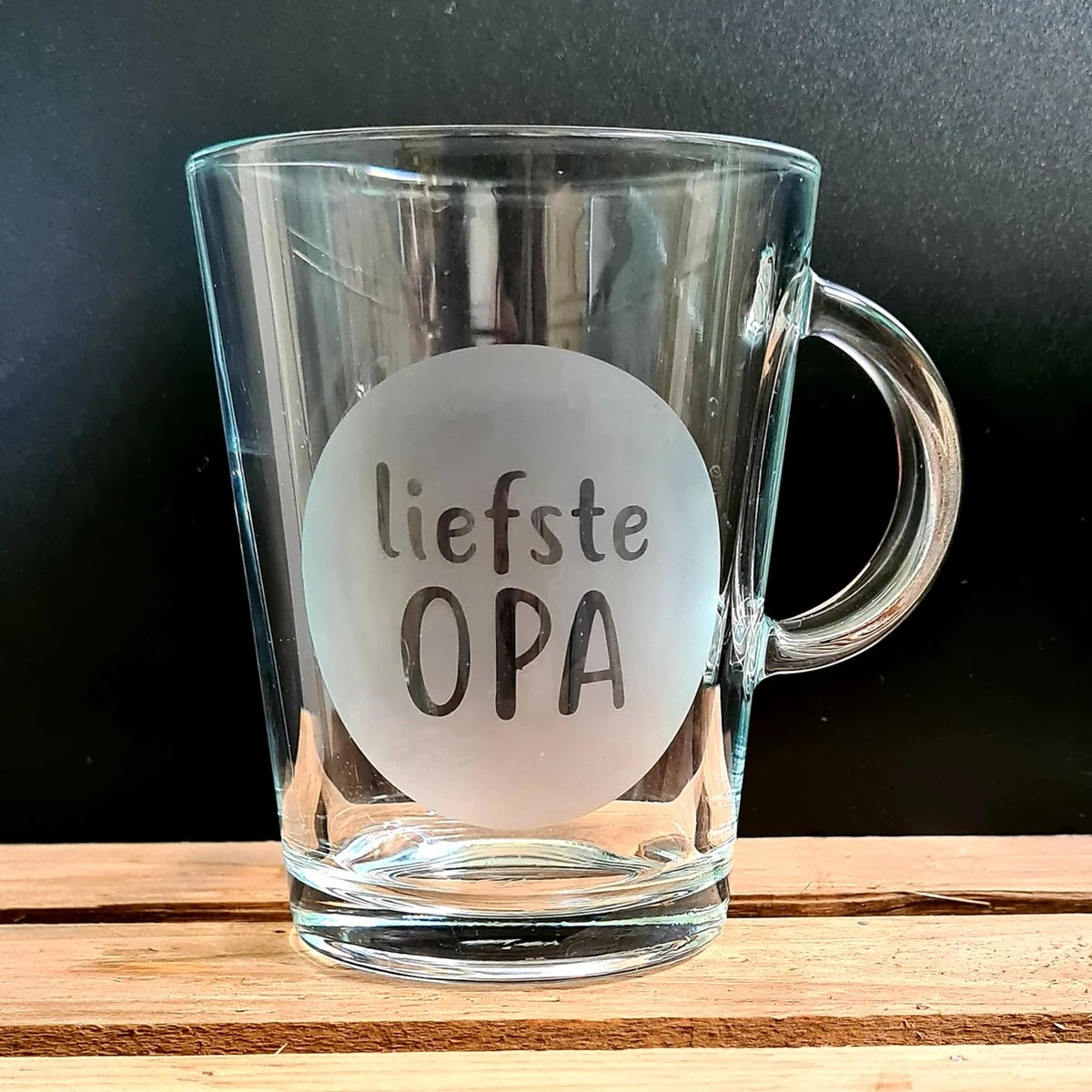 Een eigen theeglas voor jouw liefste opa! Leuk als Vaderdag cadeau of voor een verjaardag. Het glas is van professionele kwaliteit en vaatwasmachinebestendig.