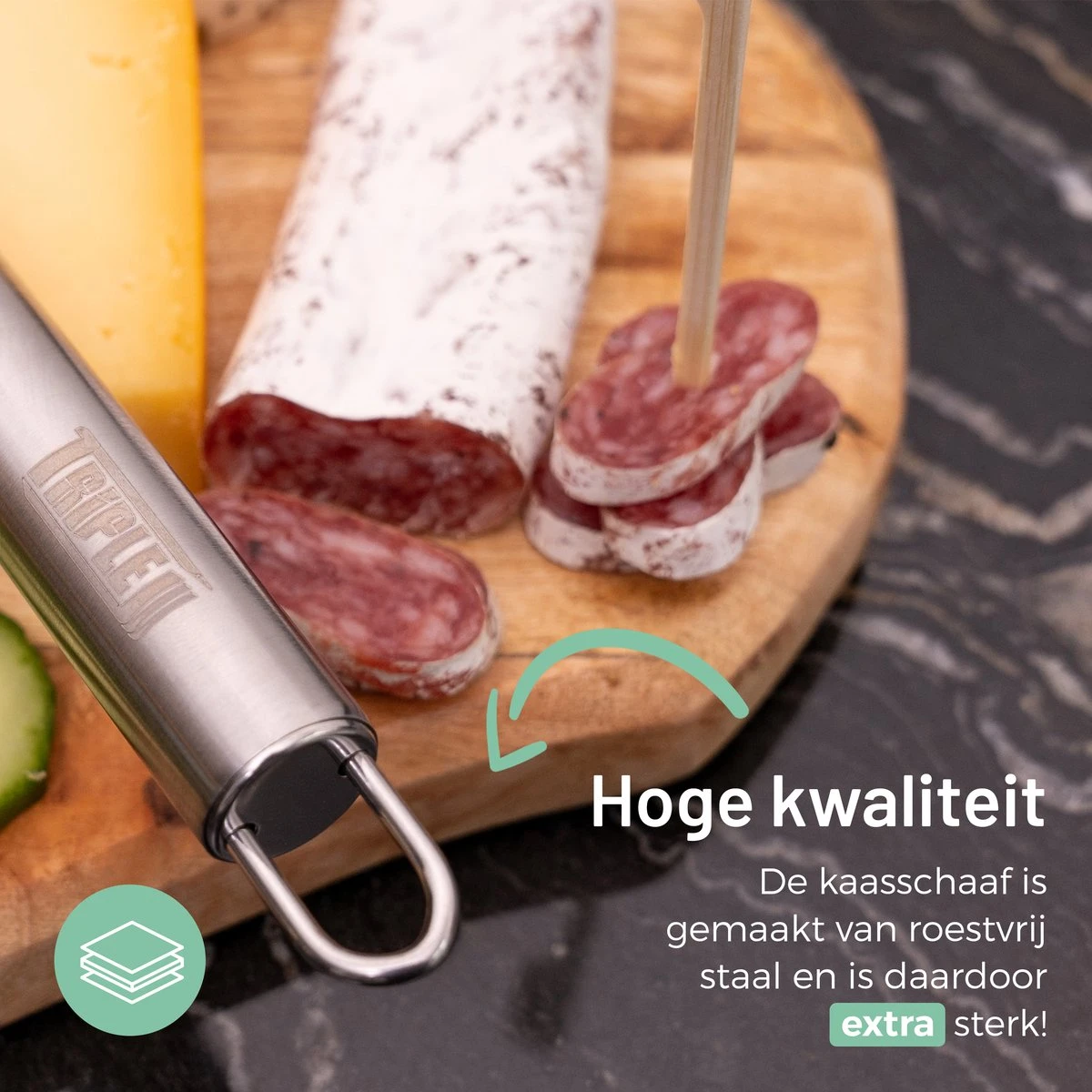 Wil jij ook perfect gesneden kaasplakjes voor overheerlijke sandwiches en tosti’s? Snij soepel en snel jouw favoriete jonge en oude kaas in plakjes met de kaasschaaf van Triple J®! De kaasrasp is gemaakt van roestvrijstaal, waardoor hij zeer sterk is. Dit in combinatie met het ergonomische handvat zorgt ervoor dat hij prettig in de hand ligt. Zo kies je vanaf nu voor een verse kaas en hoef je nooit meer voorverpakte kaas te kopen.