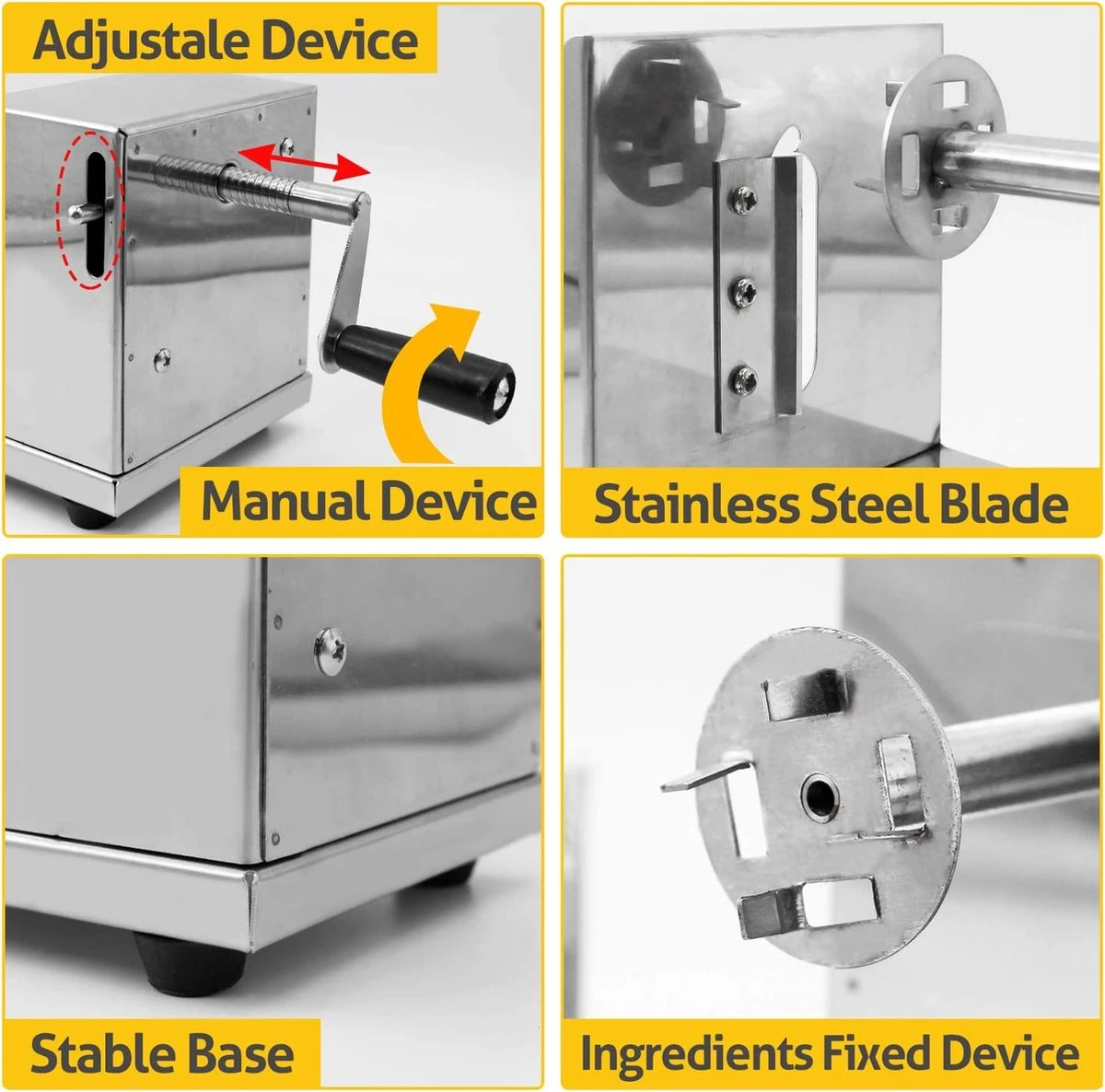 Dit Uten YF-PT100 is een zeer handige en praktische aardappeltornadosnijmachine en je krijgt het uniforme plakje snel met dit item. Dit item maakt helemaal geen puinhoop omdat je je snelheid kunt regelen. Het zal je helpen om spiraalvormige aardappelen te maken voor je geweldige barbecue-ervaring of gedraaide aardappelchips, tornado-aardappelen en andere vegetarische snacks voor je familiegastvrijheid.