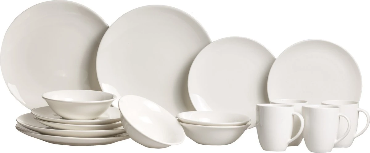 vtwonen Serviesset – Wit – Porselein – 16-Delig