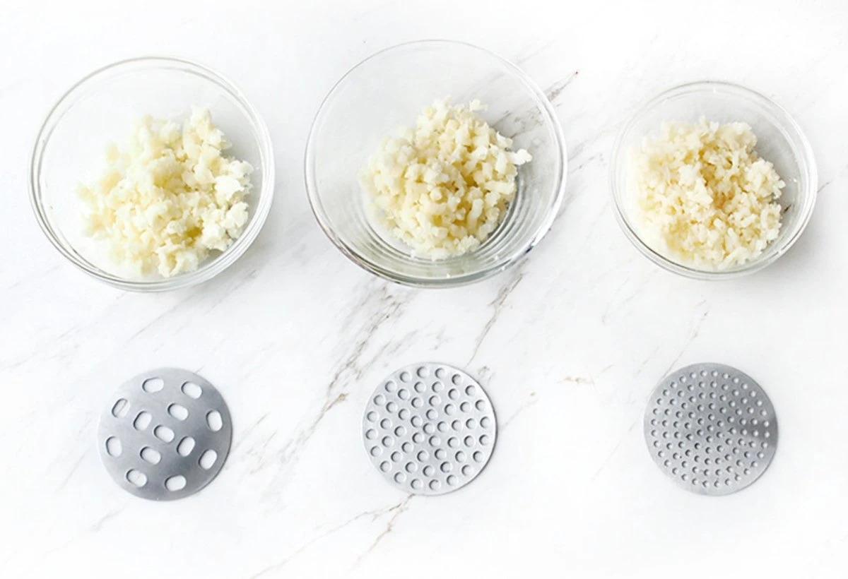 Deze schijf bevat 3 verschillende schijven, zo kan je makkelijk zelf de structuur van de puree bepalen. Glad, groffer, grofst.